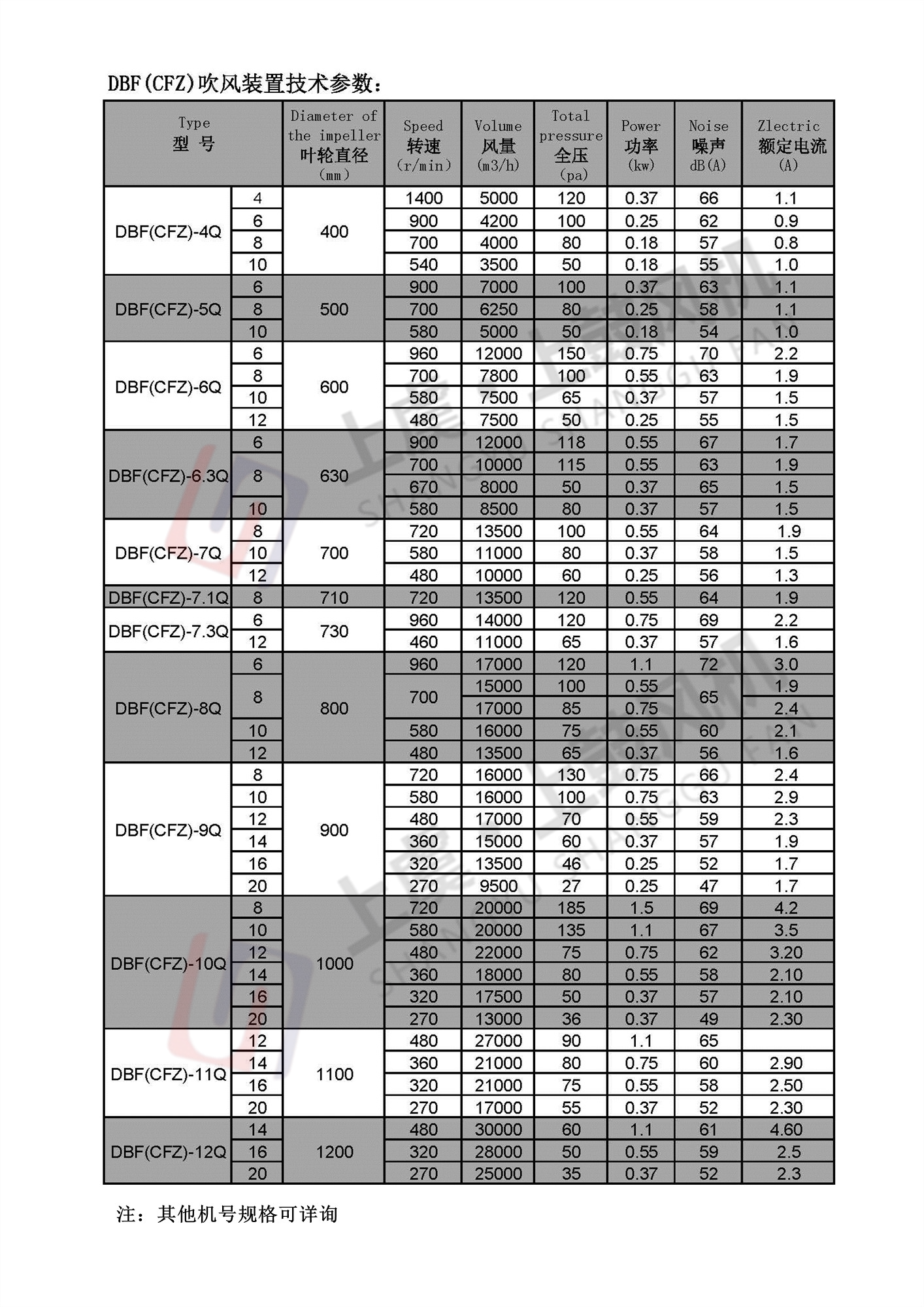 | 温控范围 | / | 风量 | 17000m³/h |